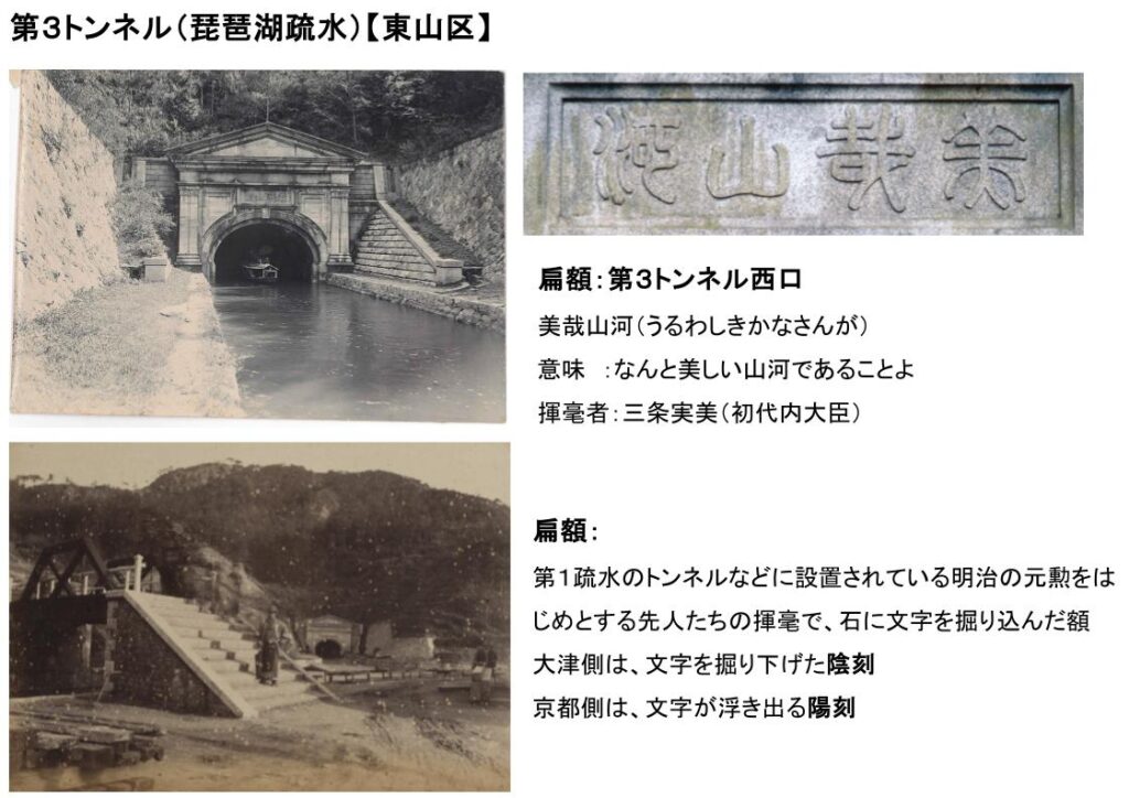 第1疏水のトンネルなどに設置されている明治の元勲をはじめとする先人たちの揮毫で、石に文字を掘り込んだ額