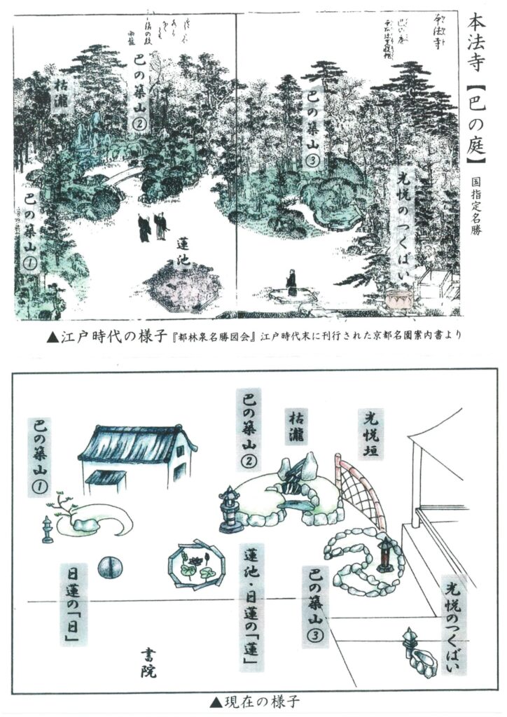 国の名勝。本阿弥光悦の作。3箇所の築山で巴紋を表現している。