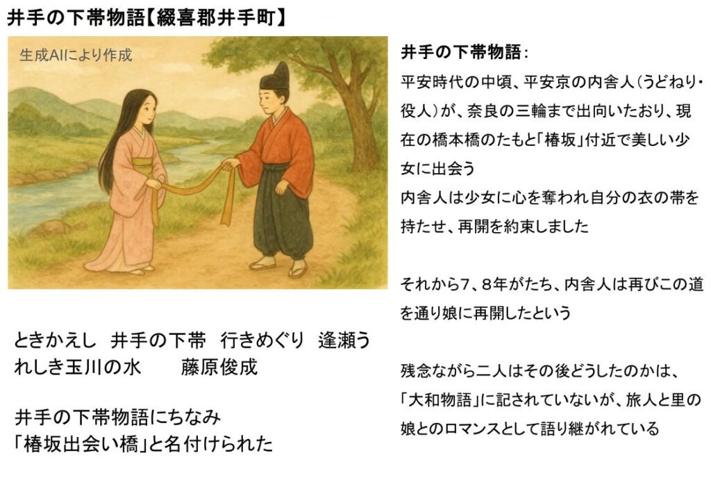 井手の下帯物語にちなみ「椿坂出会い橋」と名付けられた。