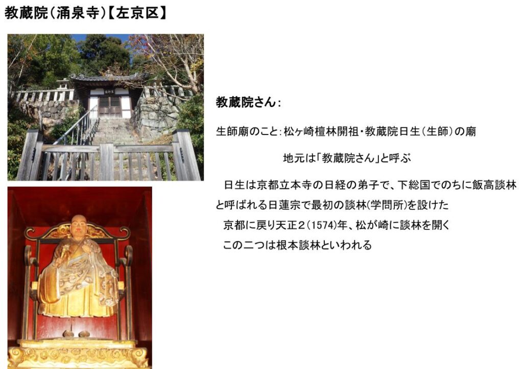 松ヶ崎檀林開祖・教蔵院日生(生師)の廟で生師廟といわれる。地元は「教蔵院さん」と呼ぶ。