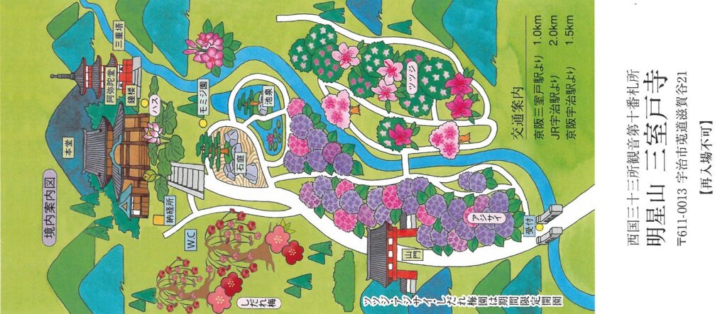 お寺宝亀年間、莵道山の志津川で観音が出現。光仁天皇が御室を移し、観音を祀る御室戸寺が起こり。