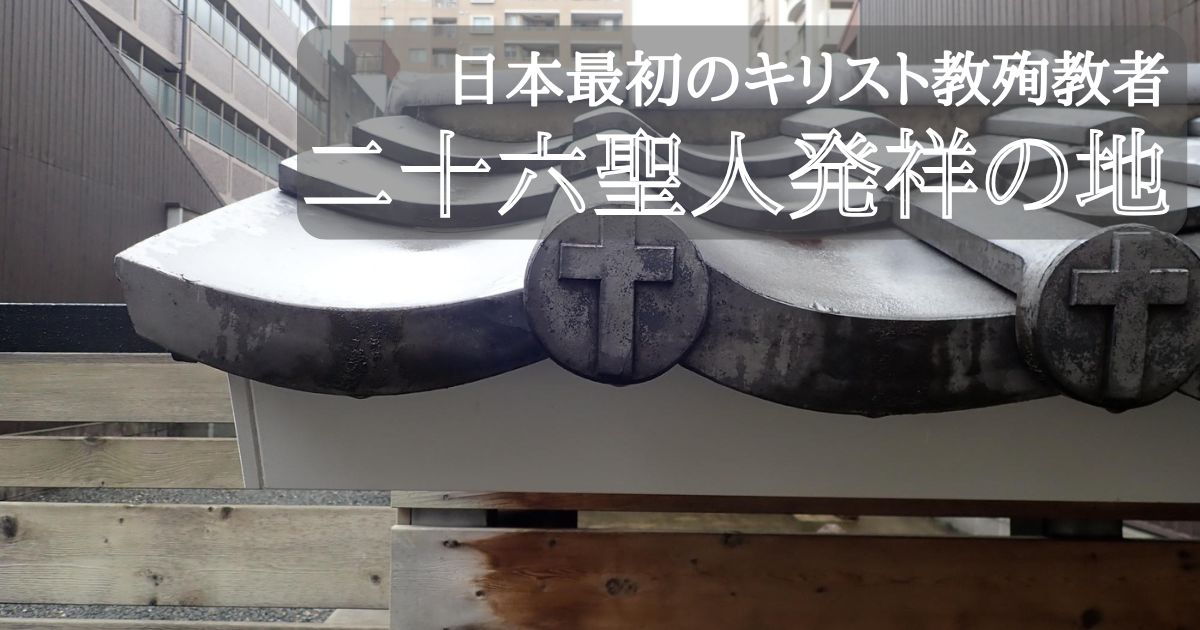 1594年にパプチスタ神父により修道院・病院が建設された跡地であり、また耳を削がれた26聖人が処刑地である長崎までの800キロを歩き出したこの地に、人々が憩える場所として、また祈りの場所が設けられた。