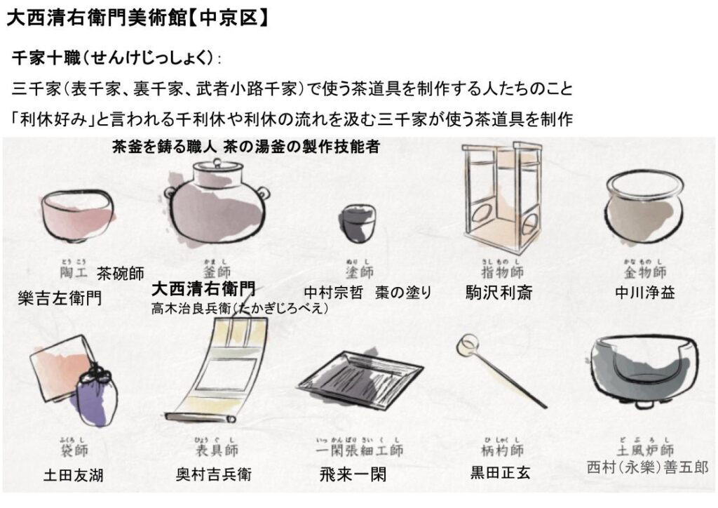 三千家(表千家、裏千家、武者小路千家)で使う茶道具を制作する人たちのこと。